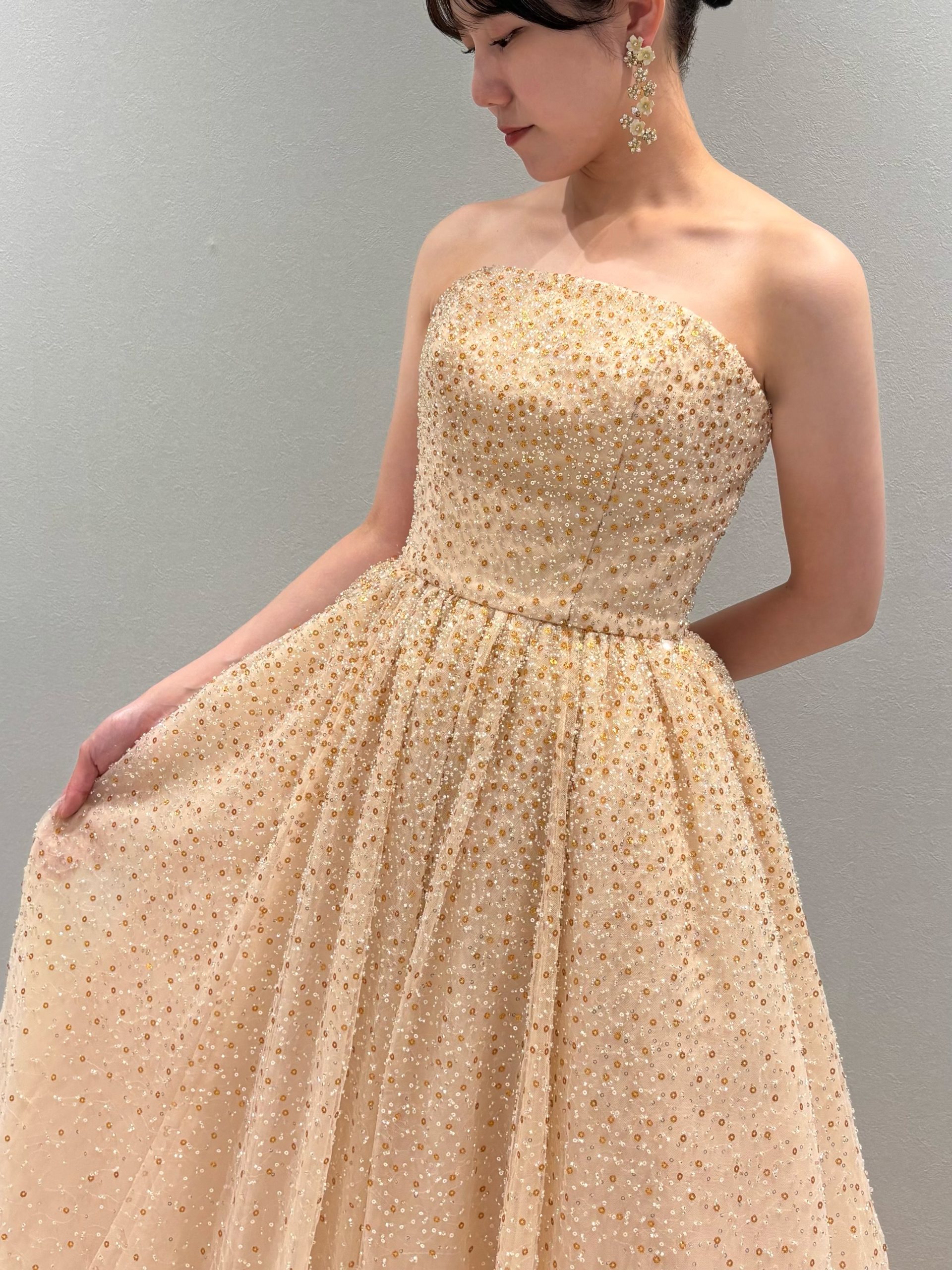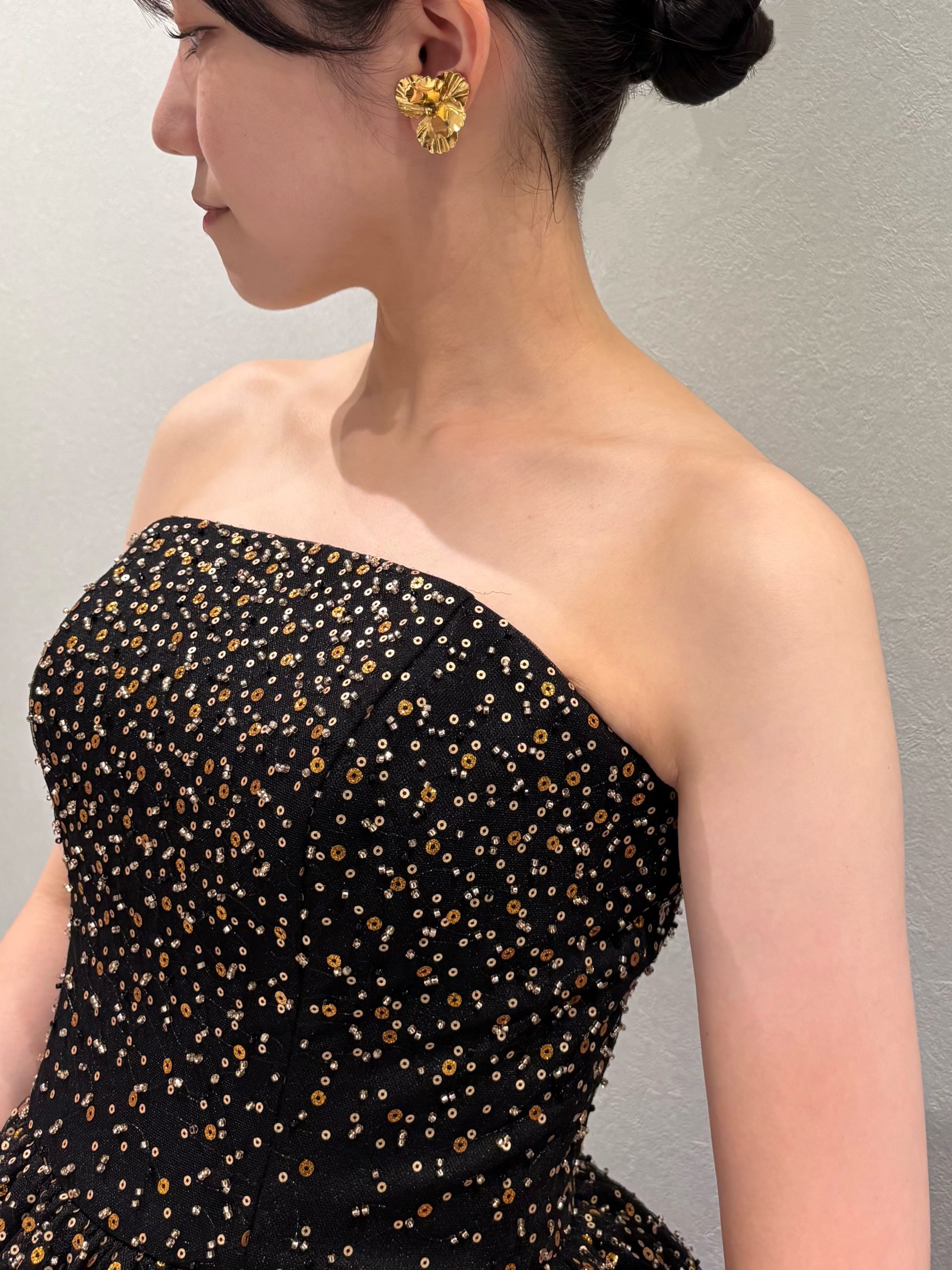 ドラマティックなビジューのあしらいがブラックカラーでも決して重たい印象にならずに、しなやかでシックにお召しいただけます。