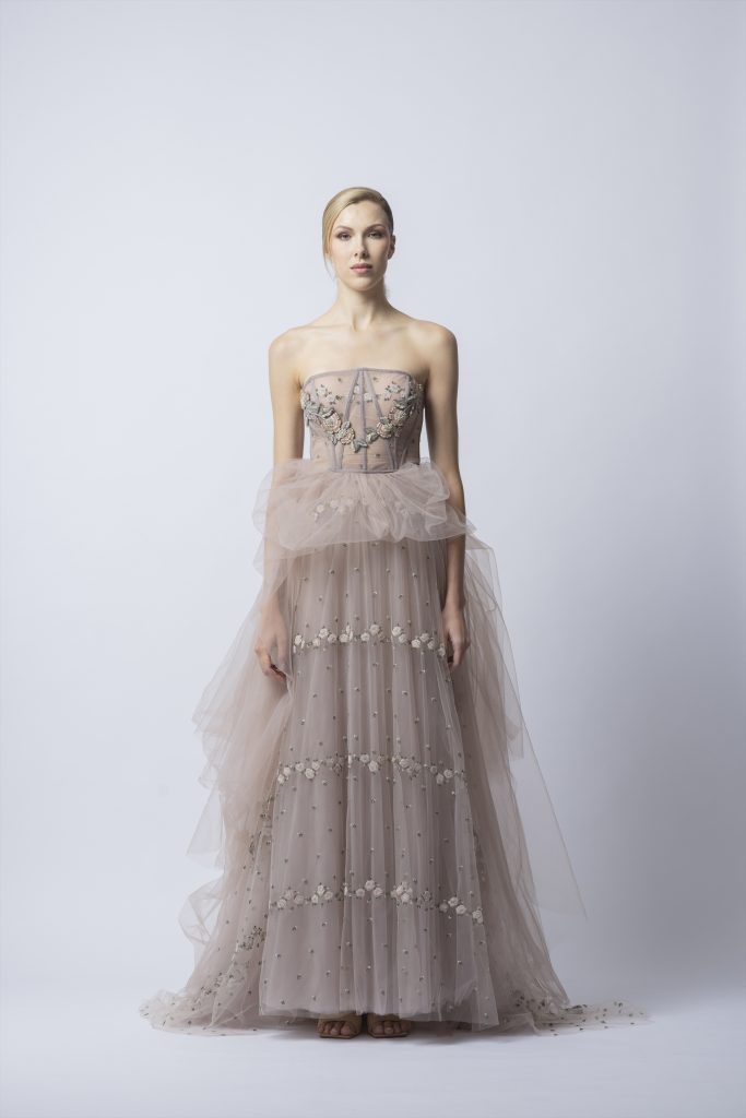 ロマンティックな淡いカラーのマテリアルに、野に咲く花のようなデザインが愛らしくも決してラブリーにはならないのは、Marco&Mariaならではの幻想的で神秘的な世界観が表現されているからこそ。一遍の物語を紡ぐような可憐な佇まいで、儚さゆえの美しさを映し出します。