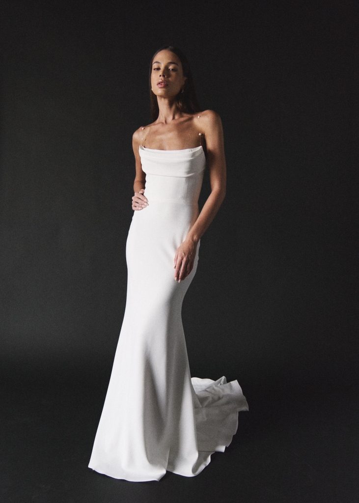 ミニマルを極めた洗練のベーシックを感じさせるようなスタイリッシュさを持ちながら、優しさも感じる滑らかな素材使いがモダンなブライズスタイルを叶えます。ストラップにあしらわれた繊細なバロックパールがエフォートレスな印象にさせます。